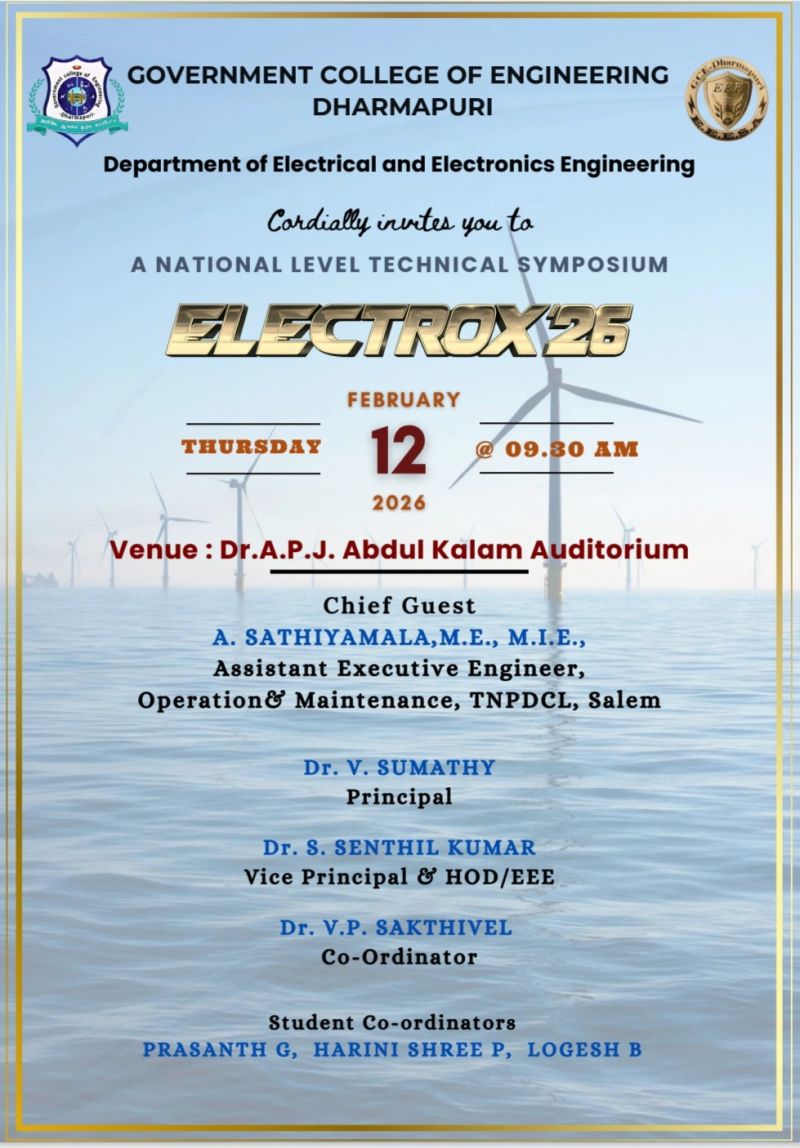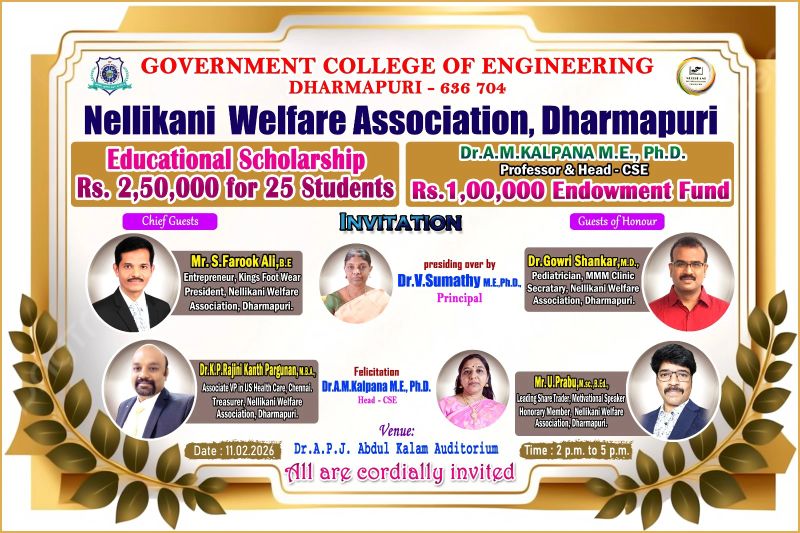 GCE Dharmapuri welcomes B.E First Year Students on 04.09.2024 (Wednesday)