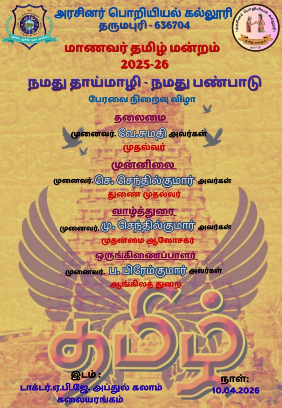 We are delighted to share that Eskalera’26 and தமிழ் மன்றம் 2025-26 were successfully conducted at our institution.