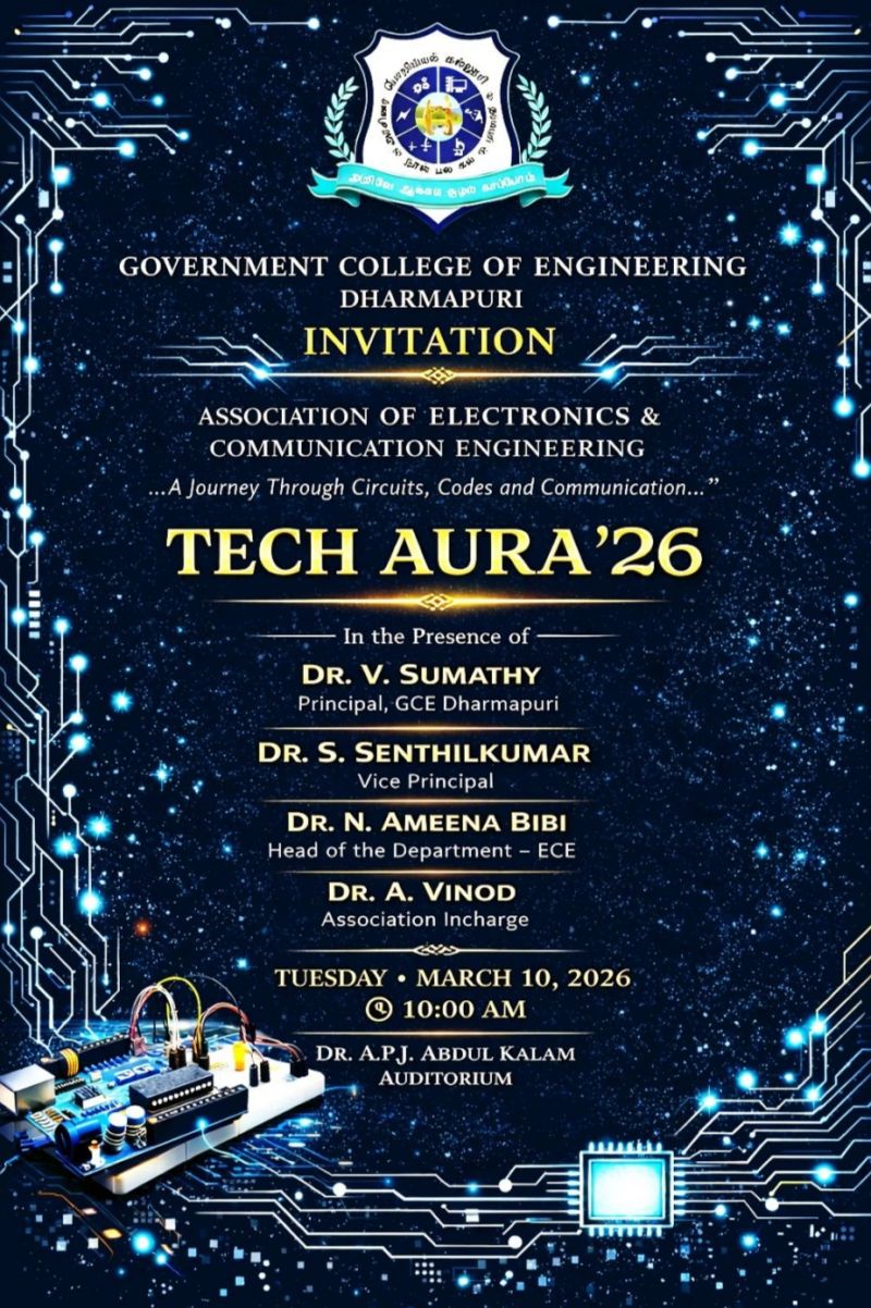 We are delighted to share that the Association of Electronics and Communication Engineering, Government College of Engineering, Dharmapuri, successfully conducted a series of technical events on 10th March 2026.