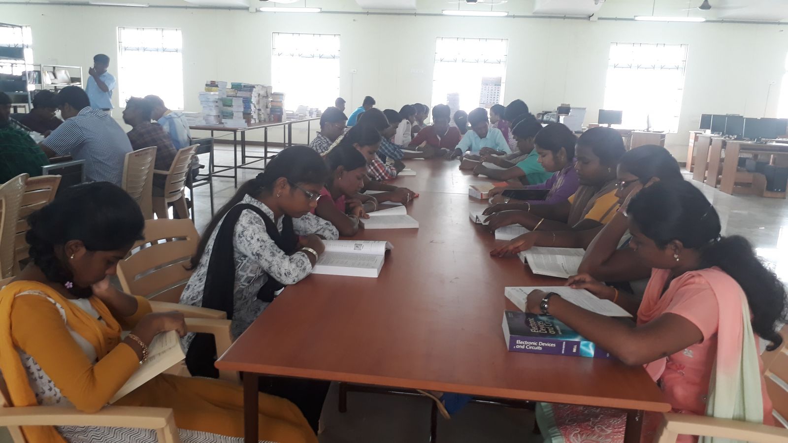 The Central Library, the seat of wisdom and source of knowledge extended over an area of 528.15 sq.mt is situated in a cozy atmosphere conducive for the pursuit of higher studies. It is equipped with books on various engineering subjects such as Electronics Communication Engineering, Electrical and Electronics Engineering, Mechanical Engineering, Civil Engineering and Computer Science Engineering and Science and Humanities subjects. This Library provides numerous books to enlighten the faculty and the students, to ignite them to take wings, to expose them to the recent issues to keep them abreast of their own field, to teach them universal values, to make them independent to fulfill the dream of self-empowerment and to make them a holistic personality. This library, a window to the world equips the students with a soft weapon called knowledge and the spirit of questioning which make them employable and triumphant in their future endeavors and inspire them towards collective good.
